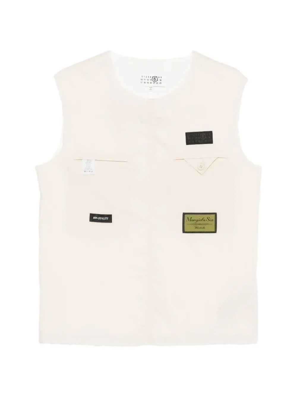 logo-patch vest Highlights - White - Chest pockets - Tonal stitching - Raw hem - Crew neck - Sleeveless Made in Italy Composition Cotton 63%, Polyester 37% Washing instructions Read Manufacturer Guidelines