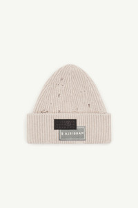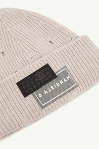 This ribbed knit hat updates utility with a distressed feel. The raw finish and visible holes lend a worn-in irreverence, while twin labels – one reversed – play with perception. Soft, sculptural, and signed with the Maison’s numeric artwork. Product Details Item ID SH0TB0001M13138806M Primary Fabric: 80% Wool 20% Polyamide-Nylon Rib-knit wool beanie Distressed detailing Wide turned-up brim Dual signature patch at the back Made in Italy