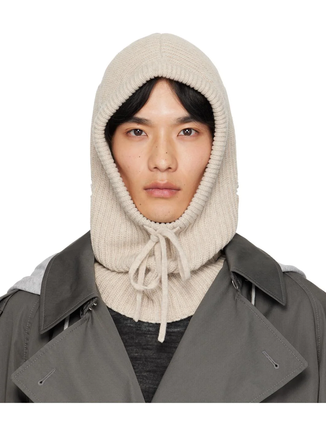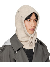 Rib-knit wool-blend hood. · Distressing throughout · Drawstring at face · Logo patch at back face Supplier color: Nude 80% wool, 20% polyamide. Made in Italy 252188M138002
