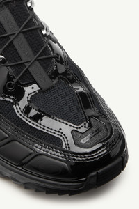 MM6 Maison Margiela x Salomon ACS PRO illustrates the capsule's hybrid perspective, marrying a progressive aesthetic with performance-ready credentials. The MM6 x Salomon collaboration speaks to the brands’ shared ethos of transitional design, first seen in the Maison’s Autumn/Winter 2022 show. Drawing inspiration from the everyday, the collection is a celebration of the unsung beauty of quotidian dressing; of the eclectic blur of clothes that pass us by on our city streets. The iconic sneaker is made with synthetic material and gets a fresh update while maintaining a sturdy construction on the upper. The material and trim are highlighted by a gloss and shiny finish. This technical masterpiece offers a sportswear silhouette with casual appeal. Product Details Item ID S59WS0214P5743H9938 Upper: 100% polyester Contrast: 100% polyurethane Lining: 100% polyester Inside: 100% polyester Sole: 100% rubber Lacing system: Salomon Quicklace® Synthetic MM6 x Salamon ACS Pro Sneakers MM6 label on the tab MM6 label at the back