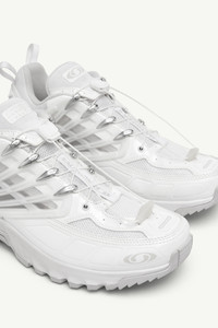 Blurring the lines between performance and conceptual design, these MM6 x Salomon sneakers bring technical expertise into a new creative space. The toggle lace-up front ensures a dynamic fit, while MM6’s numeric artwork and Salomon’s signature branding mark the intersection of functionality and style. A fusion of sportswear appeal and boundary-pushing aesthetics. Product Details Item ID S59WS0214P6163HB008 Upper: 50% Polyamide-Nylon, 50% Polyester Contrast: 60% Polyurethane, 40% Polyester Contrast: 100% Polyurethane Lining: 100% Polyester Inside: 100% Polyester Sole: 100% Rubber Low-top sneaker silhouette Quick-pull toggle lace system Mesh and synthetic layered upper Structured overlays on upper Padded collar and tongue Pull tabs at heel and tongue Prominent branding throughout Textured rubber outsole with lugs Rounded toe shape Black midsole with sculpted detail Reflective grey cage overlay on sides White stitch line at the back