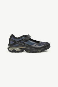 The MM6 x Salomon collaboration speaks to the brands’ shared ethos of transitional design, first seen in the Maison’s Autumn/Winter 2022 show. Drawing inspiration from the everyday, the collection is a celebration of the unsung beauty of quotidian dressing; of the eclectic blur of clothes that pass us by on our city streets. This season, MM6 introduces a Mary Jane hybrid sneaker maintaining Salomon's technical performance and functionality. The style is crafted from recyclable polyester and features and adjustable strap with MM6's numeric signature on it. Product Details Item ID SH3WS0005P7010HA453 Upper: 100% polyester Contrast: 100% polyurethane Lining: 100% polyester Inside: 100% polyester Sole: 100% rubber Mary jane shoes in recycled polyester Adjustable strap with MM6 numeric signature
