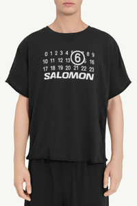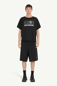 This seamless T-shirt combines MM6’s minimalist design language with Salomon’s technical expertise. The regular fit and crewneck ensure easy wear, while the MM6 numeric signature and Salomon label at the front, alongside the white stitch line at the back, elevate this simple silhouette into a refined, athletic piece. Product Details Item ID SH0GC0051M20101900 Composition: 100% nylon Nylon T-shirt Seamless Crewneck MM6 x Salomon label at the front MM6 x Salomon label at the back Regular fit