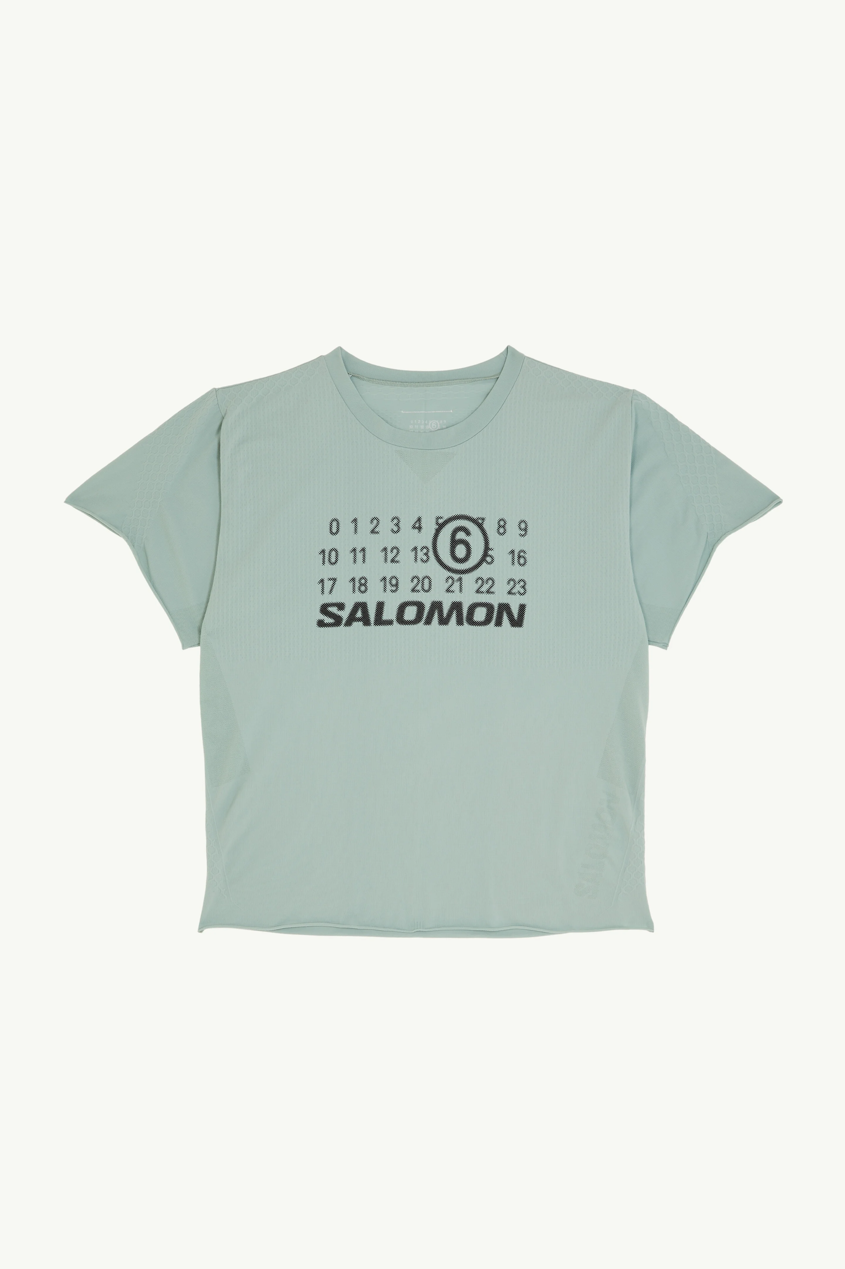 This seamless T-shirt combines MM6’s minimalist design language with Salomon’s technical expertise. The regular fit and crewneck ensure easy wear, while the MM6 numeric signature and Salomon label at the front, alongside the white stitch line at the back, elevate this simple silhouette into a refined, athletic piece. Product Details Item ID SH0GC0051M20101700 Composition: 100% nylon Nylon T-shirt Seamless Crewneck MM6 x Salomon label at the front MM6 x Salomon label at the back Regular fit