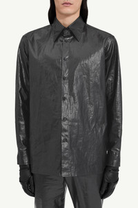 This long-sleeved shirt is cut from linen with a coated overlay that gives it a distinctive crinkled gloss. The straight silhouette is anchored by a sharp point collar and tonal button closure. Finished with the MM6 white stitch line at the back. Product Details Item ID SH2DT0035M35617900 Primary Fabric: 100% Linen Secondary Fabric: 100% Polyurethane Long-sleeved shirt in coated linen Crinkled texture and semi-gloss finish Pointed collar Front button closure White stitch line at the back Made in Italy Model is 188 cm tall and wears a size 48.