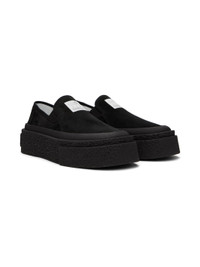 Low-top suede sneakers in black. · Logo patch at vamp · Elasticized gusset at sides · Signature white stitching at heel tab · Logo embossed at heel · Buffed leather lining · Crepe rubber platform sole · Platform: H2 in Supplier color: Black