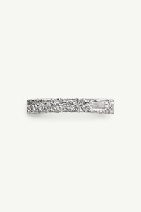 A sculptural take on an everyday form, this clip is reinterpreted in a crinkled silver-foil finish. Reflective and irregular, its surface blurs the line between preservation and reinvention. At the centre, the Maison’s numeric artwork appears as a subtle marker of identity. Product Details Item ID SM6TW0018P6622956