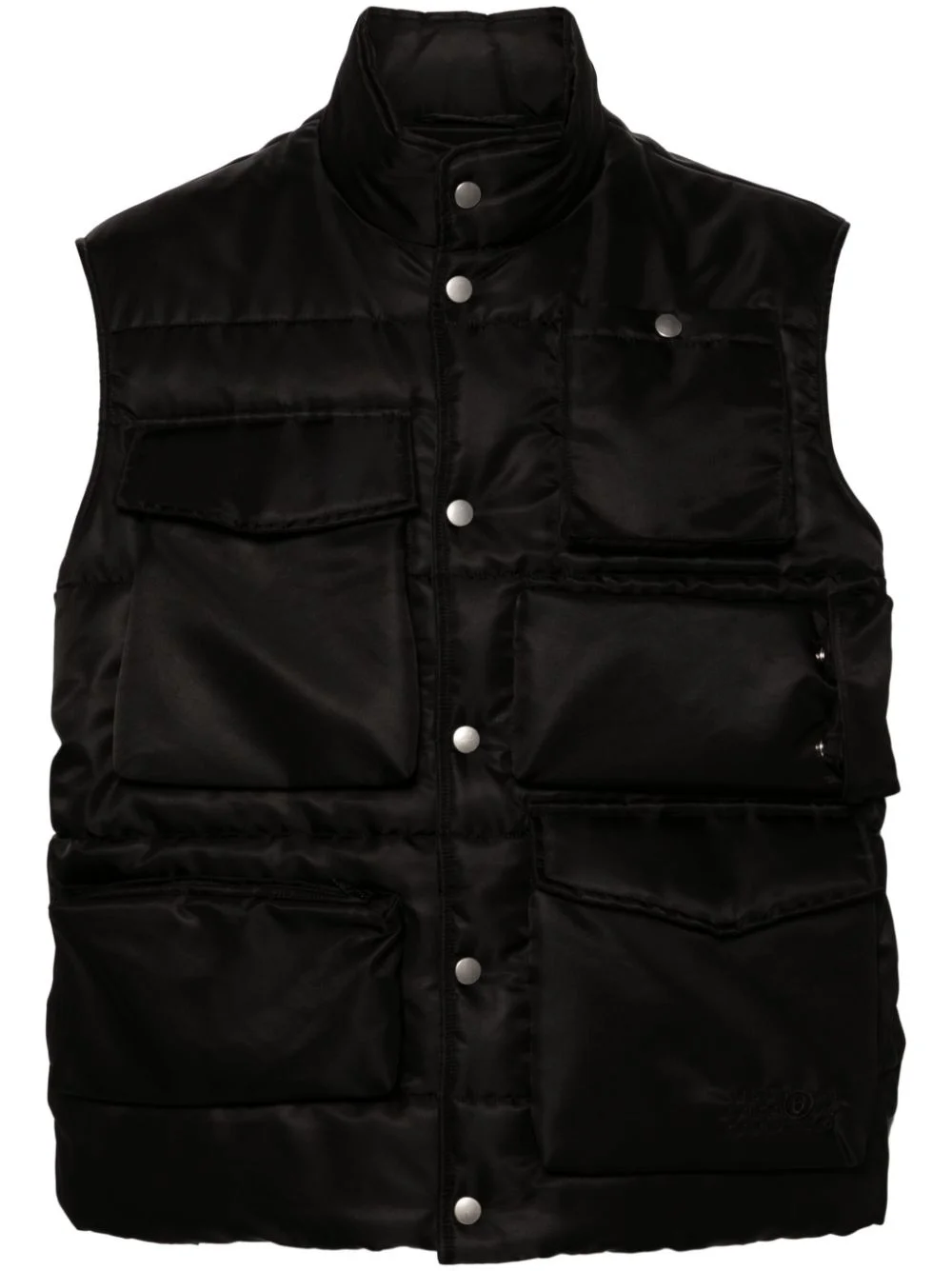 single-stitch logo gilet Highlights - Black - Twill weave - Quilted - Padded design - Signature single-stitch logo - Signature numbers motif - High neck - Front press-stud fastening - Sleeveless - Two front flap pockets - Front zip-fastening pocket - Two front stud-fastening pockets - Two side inset pockets - Curved hem - Full lining Made in Italy Composition Lining: Viscose 100%, Polyester 100% Outer: Polyamide 100% SIZE & FIT Model measurements Height 6 ft 1 in(1.85 m) Bust/Chest 35.82 in(91 cm) Hips 37.79 in(96 cm) Waist 29.13 in(74 cm) FittingInformation Designed to be unstructured, offering a loose fit throughout Made from a padded non-stretch fabric, giving it no natural elasticity This piece fits true to size – take your usual size Washing instructions Machine Wash