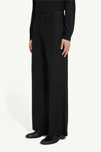 A wardrobe archetype, reconsidered. These black trousers are cut long and loose with a subtle flare and an exaggerated drape. Side seams sit clean and uninterrupted, while the back is marked by MM6’s white stitch line – a quiet disruption in an otherwise minimal construction. Product Details Item ID SH0KA0054M35433900 Primary Fabric: 57% Cotton 43% Viscose-Rayon Pocket Lining: 100% Cotton Wide-leg tailored trousers Belt loops at the structured waistband Pressed pleats through the front Rear welt pocket White stitch line at the back Made in Italy Model is 190 cm tall and wears a size 48.