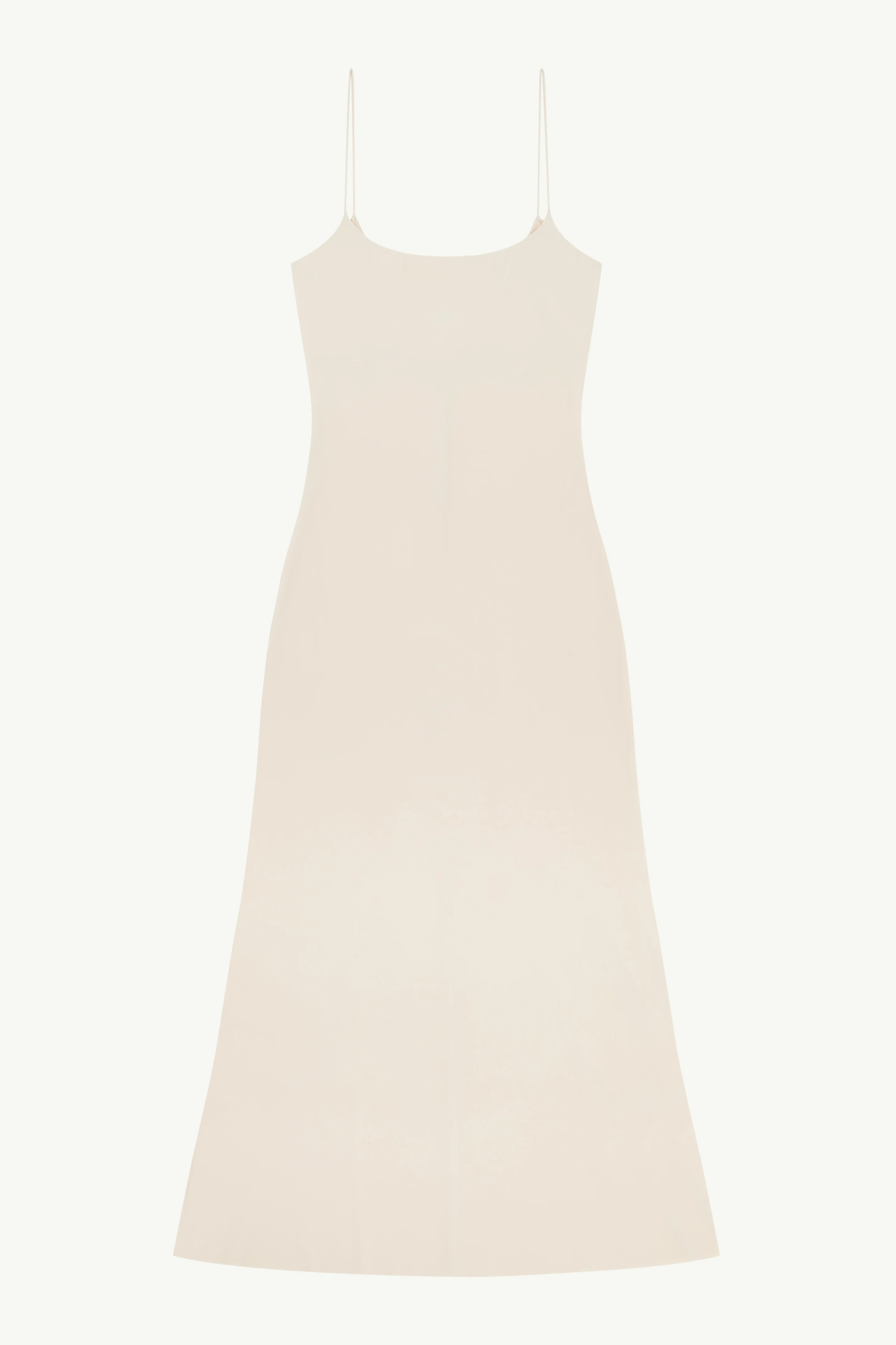 Striking in its simplicity, this slip dress pairs sharp, minimalist tailoring with fluid draping. The straight neckline and fine straps bring a contemporary edge, while the maxi length exudes quiet drama. The discreet MM6 white stitch at the back adds a quiet touch of deconstruction, embodying the Maison's signature. Product Details Item ID S52DG0022S20518118 Primary fabric: 73% polyamide-Nylon, 27% elastane Sleek maxi dress with spaghetti straps Scoop neckline, seamless silhouette Visible seam lines on sides and back No fastenings, buttons, or zippers Slim cut gradually flares to hemline White stitch line at the back Made in Italy