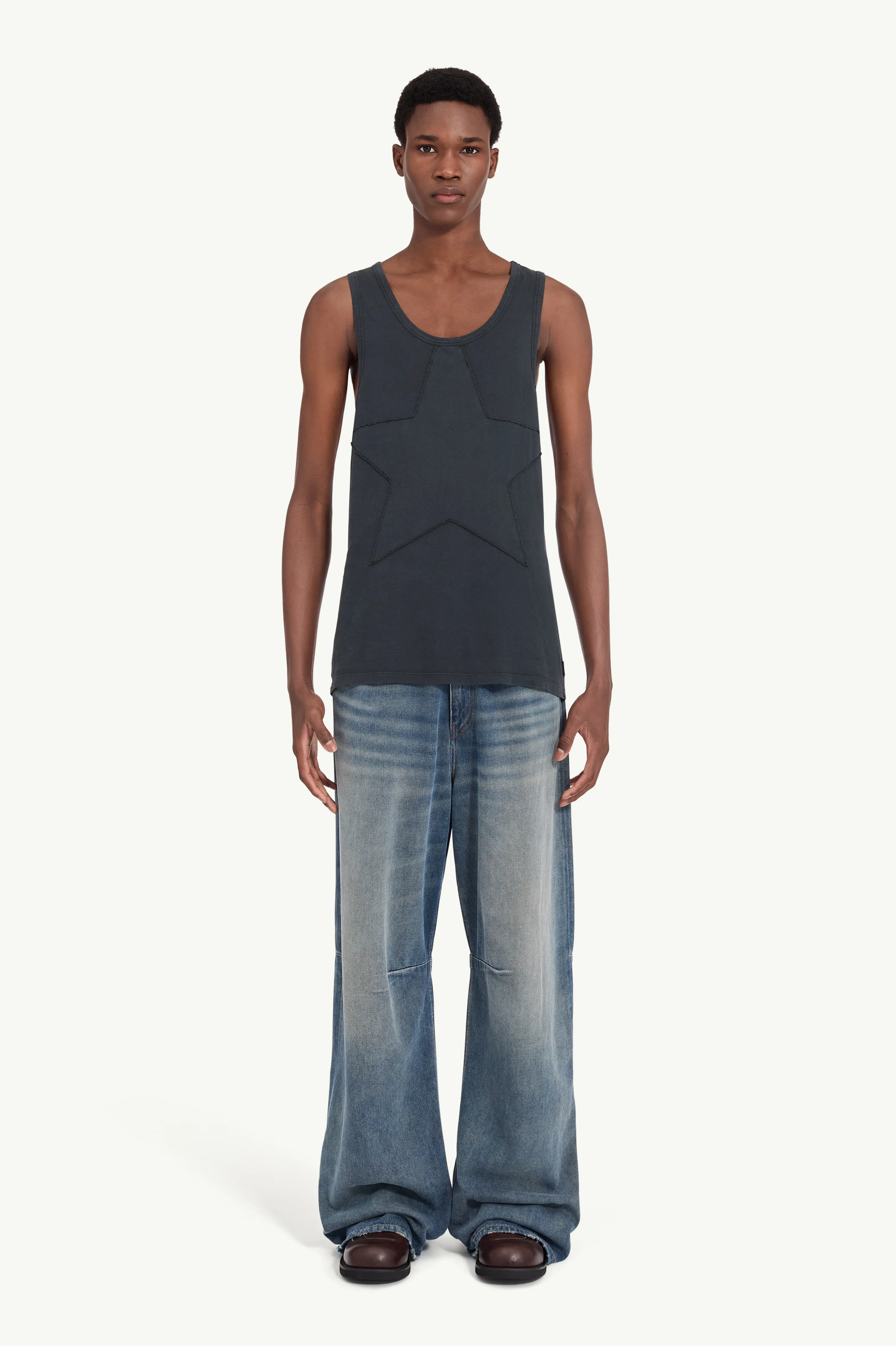 Referencing the distinctive style of Miles Davis, this cotton jersey tank top is defined by its tonal star motif stitched flat across the front. The silhouette remains streamlined and easy, cut wide through the armholes for subtle volume. At the back, the white stitch line asserts the understated authority of MM6. Product Details Item ID SH2NL0022M20108899 Primary Fabric: 100% Cotton Sleeveless tank top in cotton jersey Tonal star panel stitched across the front Round neckline Wide armholes White stitch line at the back Made in Italy Model is 190 cm tall and wears a size M.
