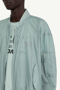 This nylon sports jacket merges MM6’s distinctive design with Salomon’s performance-driven craftsmanship. Zip and button pockets add practical functionality, together with an elasticated waist and cuffs for a snug fit. Finished with the Maison's signature white stitch line at the back, it offers a modern perspective on functional outerwear. Product Details Item ID SH0AM0056M35418700 Primary fabric: 100% nylon Nylon sport jacket Zip closure MM6 x Salomon label at the front Buttoned side pockets Utility zip pocket on right arm Elasticated waist and cuffs MM6 x Salomon label at the back