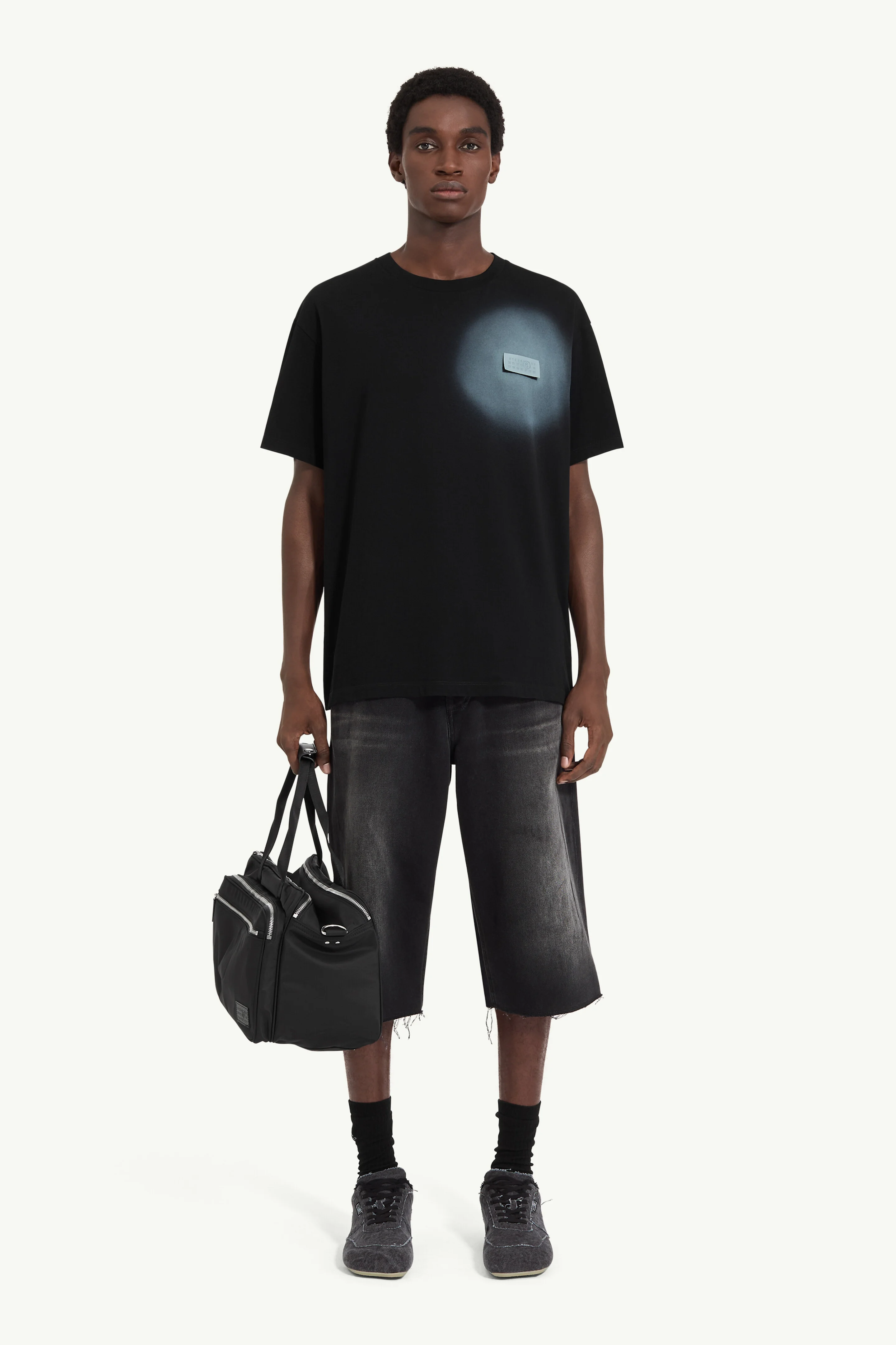 This cotton jersey T-shirt features a tonal spray-painted circle at the chest, transforming a simple dot into a bold graphic statement. The design is finished with the MM6 numeric artwork, reinforcing its distinctive character. At the back, the Maison's white stitch line asserts its signature. Product Details Item ID SH0GC0067M20048900 Primary fabric: 100% cotton Cotton jersey Spray effect detail with chest patch Short sleeves Round neck No visible closure White stitch line at the back Made in Italy