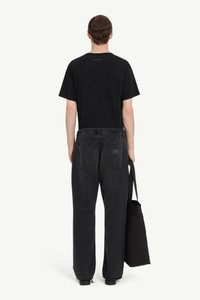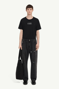 Cut to a relaxed straight-leg silhouette, these jeans feature an elasticated waistband and raw hems that nod to undone ease. Faint fading and deliberate paint specks suggest artistic spontaneity, while the signature white stitch line at the back serves as an understated mark of the Maison. Product Details Item ID SH0LA0027M30011966 Primary fabric: 100% Cotton Pocket lining: 65% Polyester, 35% Cotton Denim with paint detailing, straight leg Elastic waistband with zip and button closure Loose, straight-leg silhouette Painted splatter in white and blue Raw, frayed hemline Five-pocket design with rivets Visible belt loops Back patch label on right pocket side White stitch line at the back Made in Italy Model is 190 cm tall and wears a size 32.