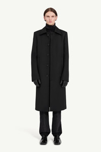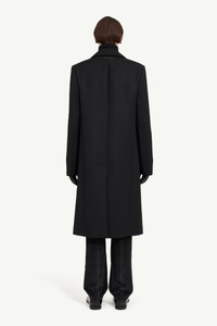 Precisely tailored, the structured silhouette and concealed placket of this coat create a clean, uninterrupted line from collar to hem. At the back, a horizontal line of white stitches affirms the Maison’s signature. Product Details Item ID SH2AA0013M35612900 Primary fabric: 55% polyester, 45% virgin wool Long coat in polyester and wool blend Pointed collar Concealed button fastening Straight silhouette with welt pockets White stitch line at the back Made in Italy Model is 186 cm tall and wears a size 48.