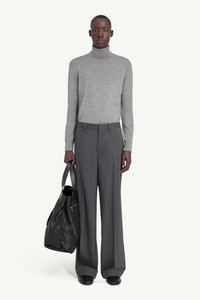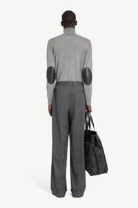 MM6 subverts classic suiting with these wide-leg trousers, elongating the proportions and slicing the sides with unfinished seams. Finished with the Maison’s white stitch line at the back, they transform everyday formality into a conceptual uniform. Product Details Item ID SH0KA0047S47848860M Primary Fabric: 54% Polyester 44% Virgin Wool 2% Elastane-Spandex Pocket Lining: 100% Cotton Wide-leg trousers in technical wool-blend suiting Tailored waistband with belt loops Pressed pleats and a soft drape through the leg Rear welt pocket White stitch line at the back Made in Italy Model is 188 cm tall and wears a size 48.