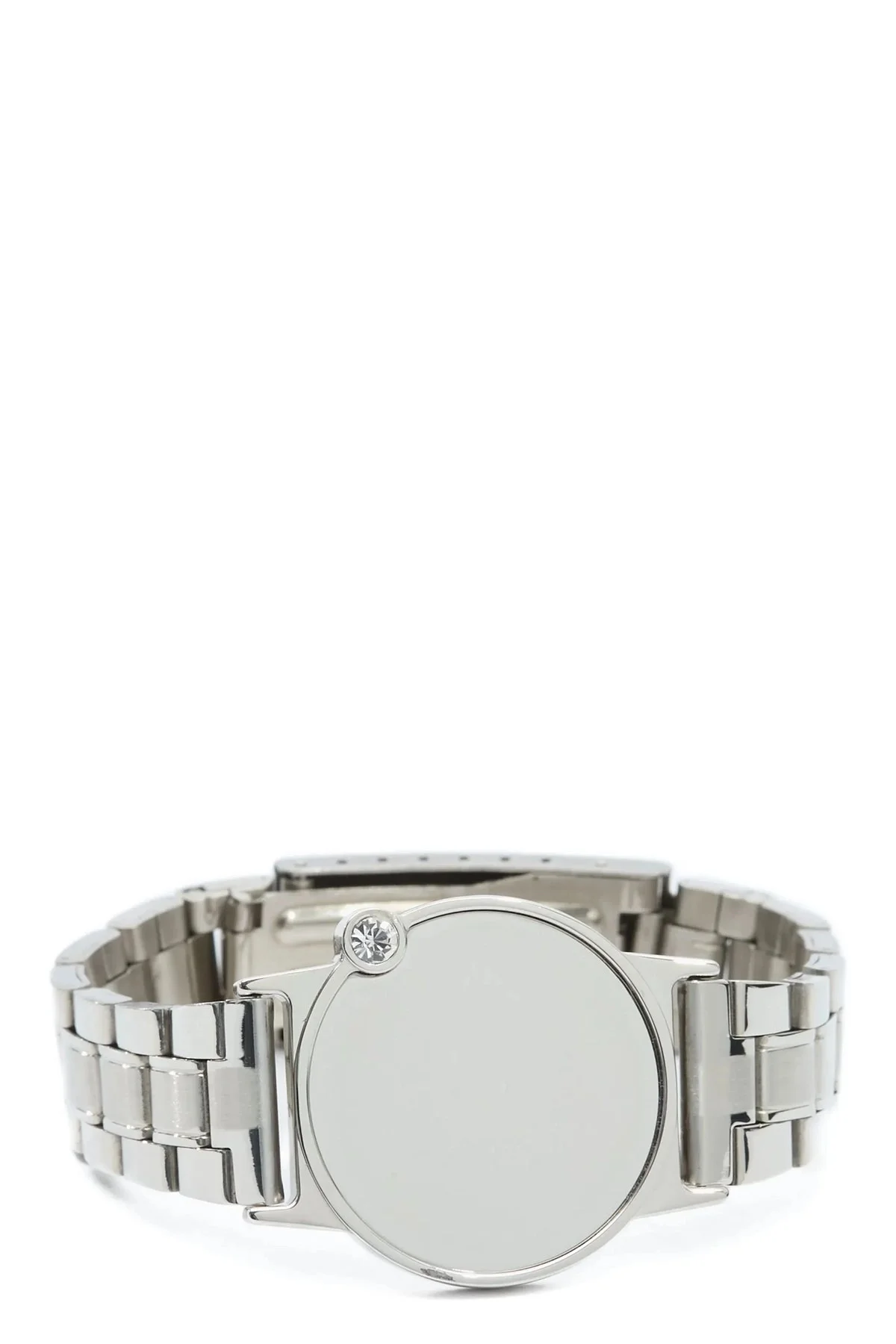 cod. SM7UY0101P8605951 Bracelet with silver brass links, trompe l'oeil watch construction with mirrored plaque and crystal applique, and box closure. Color: Silver Size & Fit: true to size fit Composition: 100% brass Made in: Italy