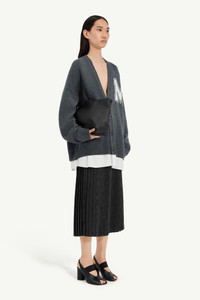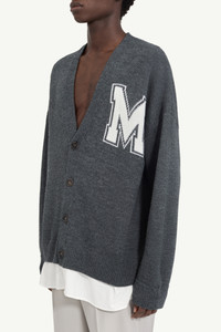 A reinterpretation of preppy classics, this cardigan fuses knitwear with shirting to create the illusion of two layers in one. The oversized “M” patch at the chest channels varsity codes, while the integrated white poplin hem underscores the Maison’s play on contrast and construction. At the back, the MM6 white stitch line highlights its identity. Product Details Item ID SH0HP0012M13206855M Primary fabric: 50% virgin wool 50% acrylic Gauge 5 Secondary fabric: 100% cotton Varsity-style knit with front M patch Long sleeves V-neck Flat buttons closure White stitch line at the back Made in Italy