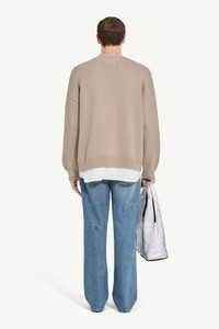 A reinterpretation of preppy classics, this cardigan fuses knitwear with shirting to create the illusion of two layers in one. The oversized “M” patch at the chest channels varsity codes, while the integrated white poplin hem underscores the Maison’s play on contrast and construction. At the back, the MM6 white stitch line highlights its identity. Product Details Item ID SH0HP0012M13206115 Primary fabric: 50% virgin wool 50% acrylic Gauge 5 Secondary fabric: 100% cotton Varsity-style knit with front M patch Long sleeves V-neck Flat buttons closure White stitch line at the back Made in Italy