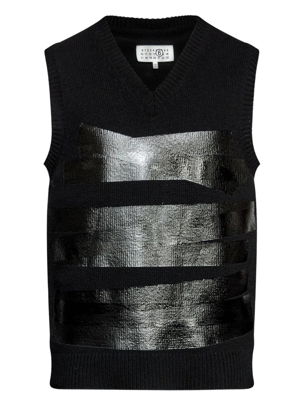 V-neck wool vest Highlights - Black - V-neck - Sleeveless - Wool knit - Tape detail Made in Italy Composition Wool 80%, Polyamide 20% Washing instructions Read Manufacturer Guidelines
