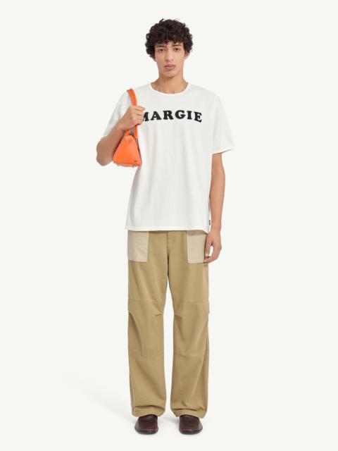 An everyday crewneck T-shirt crafted in vintage jersey. The chest print distils the Maison’s identity into a direct, graphic detail, set against an otherwise minimal design. At the back, the MM6 white stitch line marks the garment’s origin. Product Details Item ID SH2GC0040M20108173 Primary fabric: 100% cotton Heavy cotton jersey Short sleeves Round neck Logo application on the front White stitch line at the back Made in Italy