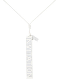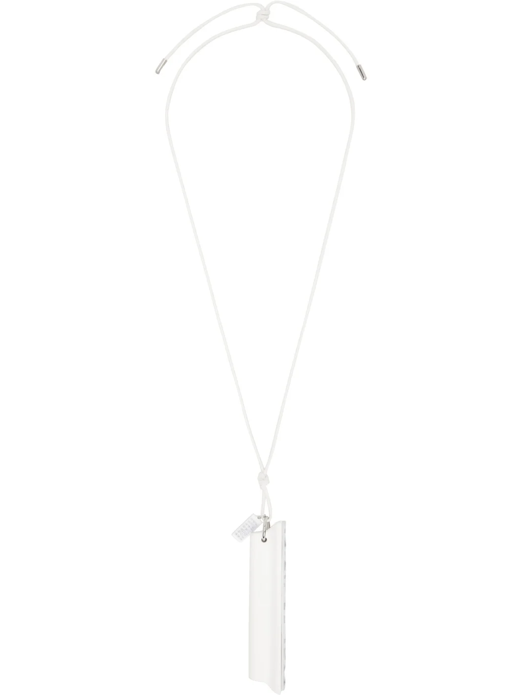 Cotton cord necklace in white. · Text-embossed graphic pendant and logo plaque at drop · Self-tie fastening · Silver-tone brass hardware · L32" Supplier color: Palladio polished Textile, brass. Made in Italy 251188M145014