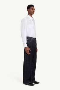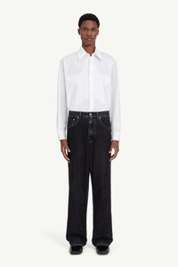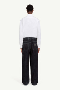 Washed for tonal depth, these wide-leg jeans embrace MM6’s off-kilter attitude with an easeful silhouette and signature accents. A leather numeric artwork patch and the MM6 white stitch line at the back complete the subversive aesthetic. Product Details Item ID SH2LA0042M30039900 Primary fabric: 98% Cotton, 2% Elastane Secondary fabric: 100% Viscose Wide-leg jeans in washed denim Five-pocket construction Belt loops Back leather logo patch White stitch line at the back Made in Italy Model is 190 cm tall and wears a size 32.