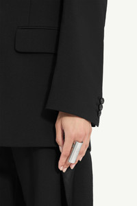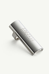 A sculptural accent in high-shine metal, this wide ring plays with scale and surface. Its oversized silhouette wraps the finger in a single, solid band engraved with the MM6 numeric signature. A distilled expression of the Maison’s subversive approach to form. Product Details Item ID SM7UQ0118P8754951 Primary material: 100% Silver-toned brass Oversized ring in polished metal Wide band silhouette Engraved numeric signature at the front Made in Italy