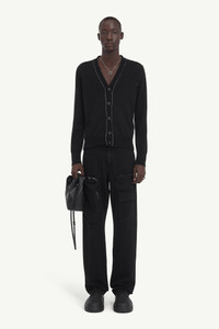 This cardigan is knitted from virgin wool to a V-neck and enlivened with ribbed trims and contrasting stitching. The style is detailed by button closure and the brand’s numeric signature embroidered at the front. MM6's discreet yet distinct signature, a horizontal line of white stitches, is also found on the back of the garment. Gauge 12 Product Details Item ID SH0HP0007M13037900 Composition: 70% virgin wool, 30% acrylic Gauge 12 Virgin wool cardigan V-neck Button closure Ribbed trims Contrasting stitching White stitch line at the back Made in Italy Model is 6'2" tall and wears a size M.