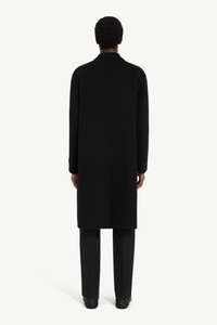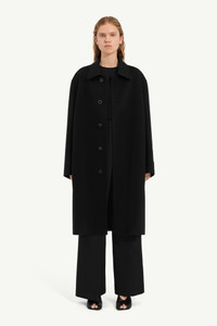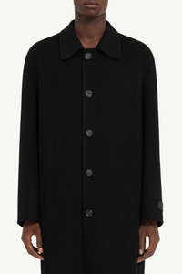 A streamlined coat in double-faced wool, cut with a relaxed shape and minimal detailing. Defined by its pointed collar and tonal buttons, the design offers a subtle play on classic tailoring. The MM6 white stitch line appears at the back. Product Details Item ID SH0AA0018M35761900 Primary fabric: 100% virgin wool Double faced wool Long sleeves Shirt collar Front button closure White stitch line at the back