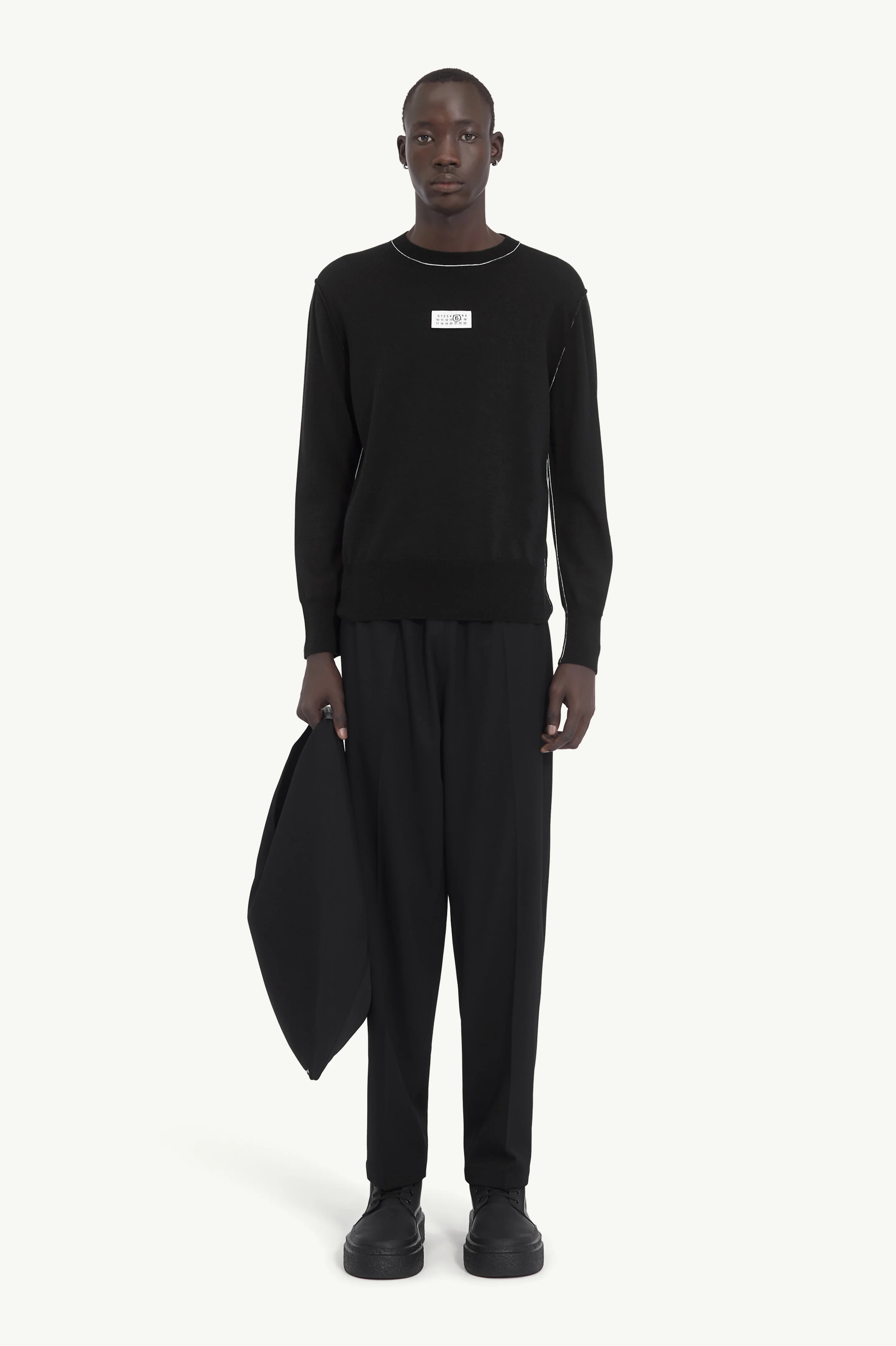 Jumper crafted from virgin wool and characterised by ribbed trims at the sleeves and the brand’s numeric signature embroidered on the front. The crewneck is finished with a subtle contrasting stitching. MM6’s discreet yet distinct signature, a horizontal line of white stitches, is also found on the back of the garment. Gauge 12. Product Details Item ID SH0HL0017M13037900 Composition: 70% virgin wool, 30% acrylic Gauge 12 Virgin wool jumper Crewneck MM6 numeric signature at the front Ribbed trims Contrasting stitching White stitch line at the back Made in Italy Model is 6'2" tall and wears a size M.