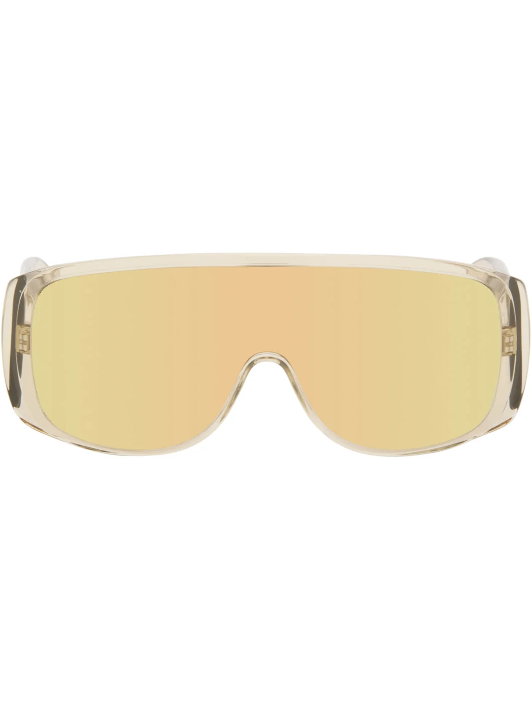 Shield-style transparent acetate-frame sunglasses. · Handcrafted · Mirrored yellow lens · Integrated nose pads · Logo engraved at temples · Core wires · Includes pouch · Size: 69.06 135 Supplier color: Ivory Acetate. Made in Italy 261188M134020