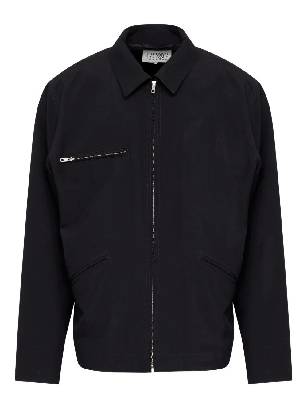 zip-up shirt jacket Highlights - Black - Zip fastening - Front welt-pockets - Point collar - Long sleeve - Button cuffs Made in Italy Composition Polyester 55%, Virgin Wool 45% Washing instructions Read Manufacturer Guidelines