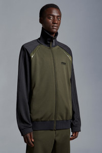 This zip-up sweatshirt for men is characterized by the interplay between matte and sheen – emblematic of the Moncler x adidas Originals collection. An adidas Originals classic is seen through the Moncler lens in this zip-up track top. Made from acetate, it's defined by a two-tone style detailed with subtly padded nylon accents. Iconic three stripes punctuate the sleeves, and both brand logos deliver the final touch on the chest. - Crafted from acetate - Slightly padded nylon accents - High neck - Zipper closure - Knit neckline, cuffs and hem - Logos on chest - Three adidas stripes along the sleeves - Logo patch on the sleeve SIZE AND FIT - The model is wearing a size L and is 185 cm tall - The model measures: chest 62 cm, waist 86 cm, hips 43 cm - Oversized fit COMPOSITION AND CARE BASE FABRIC: 100% Polyester; Hem rib: 85% Polyester, 13% Polyamide / Nylon, 2% Elastane / Spandex; Collar rib: 55% Polyester, 23% Polyamide / Nylon, 19% Viscose / Rayon, 3% Elastane / Spandex; SLEEVES: 100% Polyester; 1 MATERIAL: 100% Polyamide / Nylon Wash max 30°C - Very mild process; Do not bleach; Do not tumble dry; Ironing maximum temperature 110°C - without steam; Do not dry clean; Professional wet cleaning - very mild process; Flat dry in the shade; Wash separately; Wash inside out; PROTECT TRIMS WHILE WASHING; Iron inside out Product code I209S8G00003M2291F98 Made in Albania