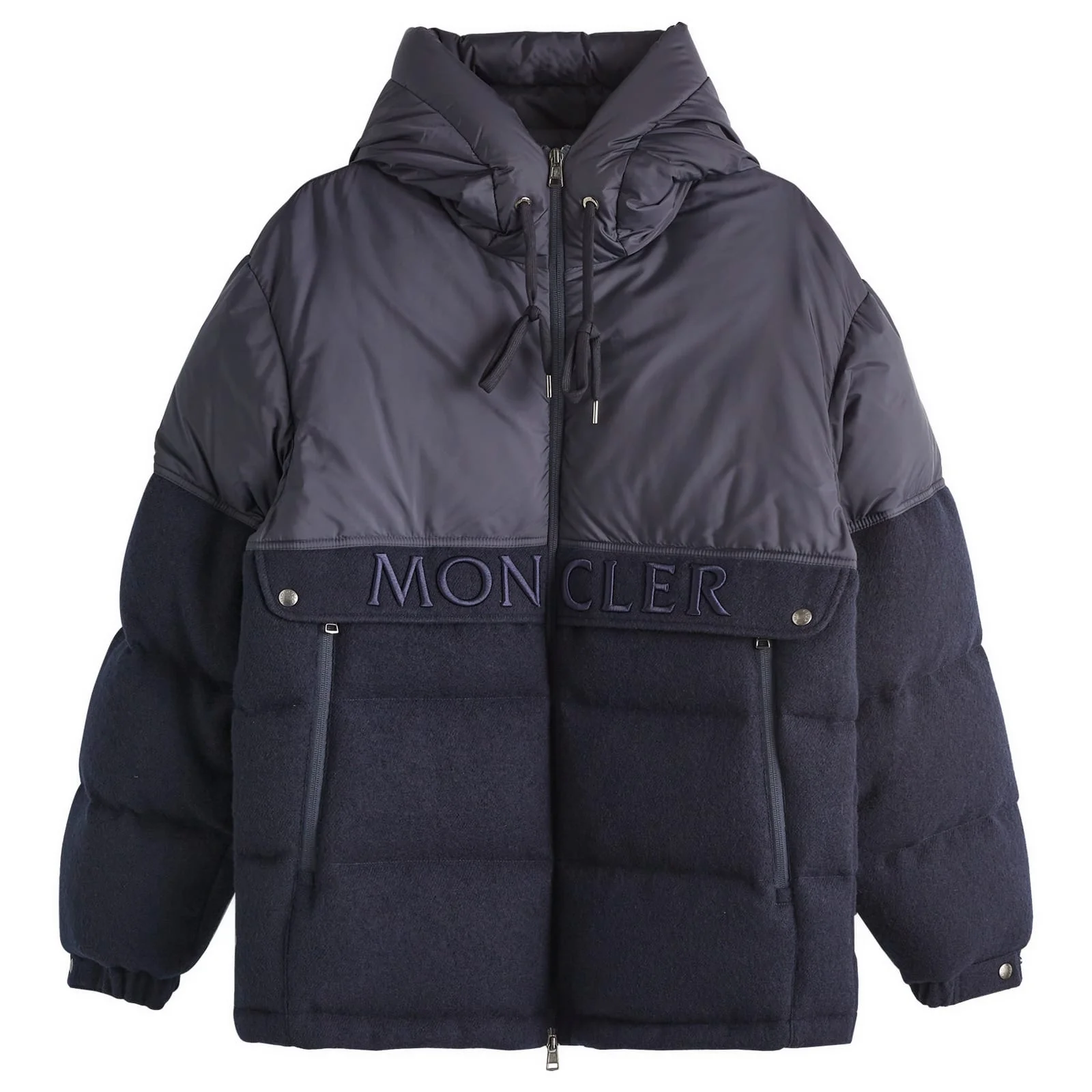 Born in the mountains, Moncler knows a thing or two about conquering extremes—whether it's alpine slopes or freezing city streets. The Andres Wool Padded Jacket will shield you from the elements in luxury style, crafted from brushed knit virgin wool with signature goose down filling. A drawstring hood extends the coverage, whist logo embroidery spans across the chest to seal the look. - Main Body: 100% Virgin Wool - Secondary Body: 100% Polyamide - Drawstring Hood - 2-Way Zip Closure - Zip Pockets - Embroidered Branding - Adjustable Bungee Hem
