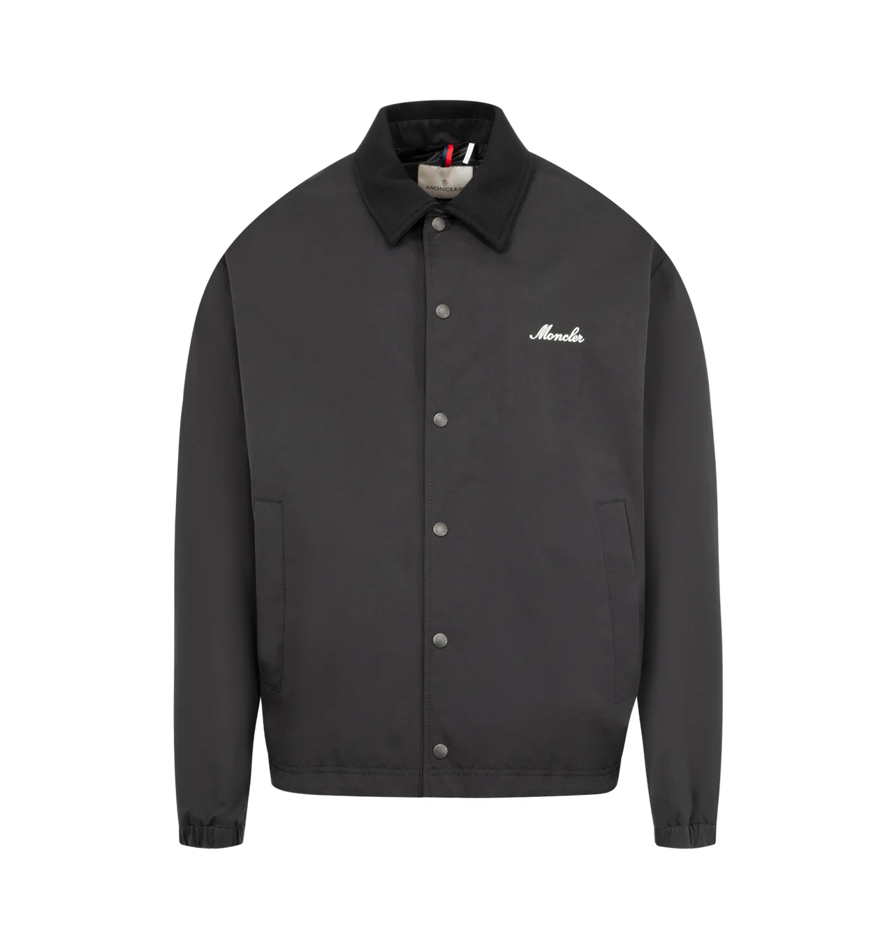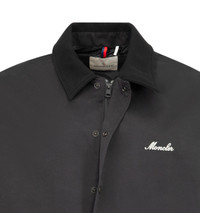 MONCLER Arinell Shirt Jacket featuring a brushed polyester and cotton blend, nylon lining, rib knit collar, zipper and snap button closure, pockets with button closure, inside zipped pocket, hem with drawstring fastening and embroidered logo. 53% polyester, 33% cotton, 14% polyamide/nylon. DESIGNER STYLE ID: 1G000-17-5994S COLOR: 999 BLACK