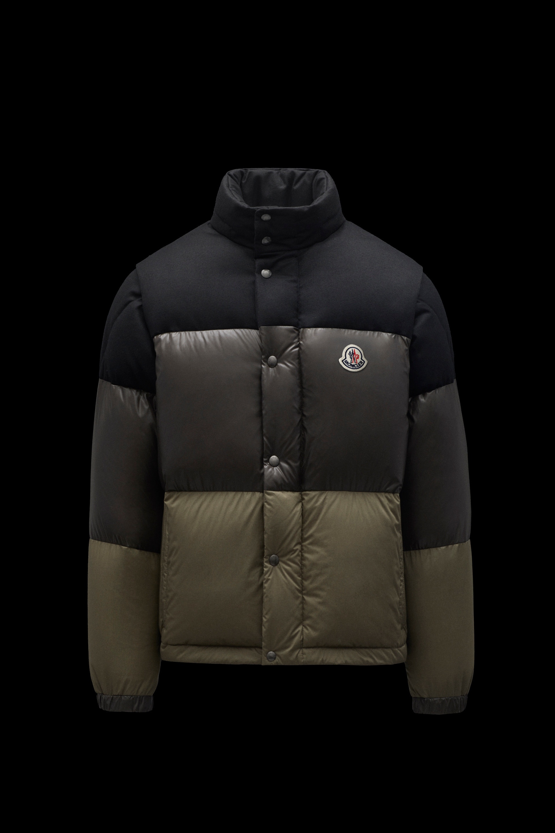 A classic Moncler menswear piece, the versatile Aveillan can be worn as a down jacket or vest, depending on the weather. The Aveillan down jacket combines lightweight flannel and shiny nylon laqué in a stylish block color design. Featuring detachable sleeves and a high neck with an extractable hood, this is a must-have multipurpose wardrobe item. - Down jacket for men - Crafted in lightweight flannel and shiny nylon laqué - Down filled with boudin quilting - Color block pattern - Stand collar with extractable hood - Shiny nylon laqué lining - Detachable sleeves - Zippered pockets - Adjustable elasticized cuffs with snap closures - Felt Moncler logo on chest - Front zipper covered by storm flap with snap closures SIZE AND FIT - The model is wearing a size 3 and is 187 cm tall - Featuring a regular fit across the shoulders, and a straight cut through the body. COMPOSITION AND CARE OUTER BOTTOM: 100% Cotton; OUTER UPPER PART: 100% Virgin wool; LINING: 100% Polyamide / Nylon; HOOD LINING: 100% Polyamide / Nylon; HOOD: 100% Polyamide / Nylon; PADDING: 90% Down, 10% Feather; 1 MATERIAL: 100% Polyamide / Nylon Do not wash; Do not bleach; Do not tumble dry; Ironing maximum temperature 110°C - without steam; Dry cleaning in tetrachloroethene or with hydrocarbons - mild process; Do not professionally wet clean; Flat dry in the shade; Wash separately; It is advisable to wash and iron the garment on reverse. Product code G20911A0004454272999 Made in Romania