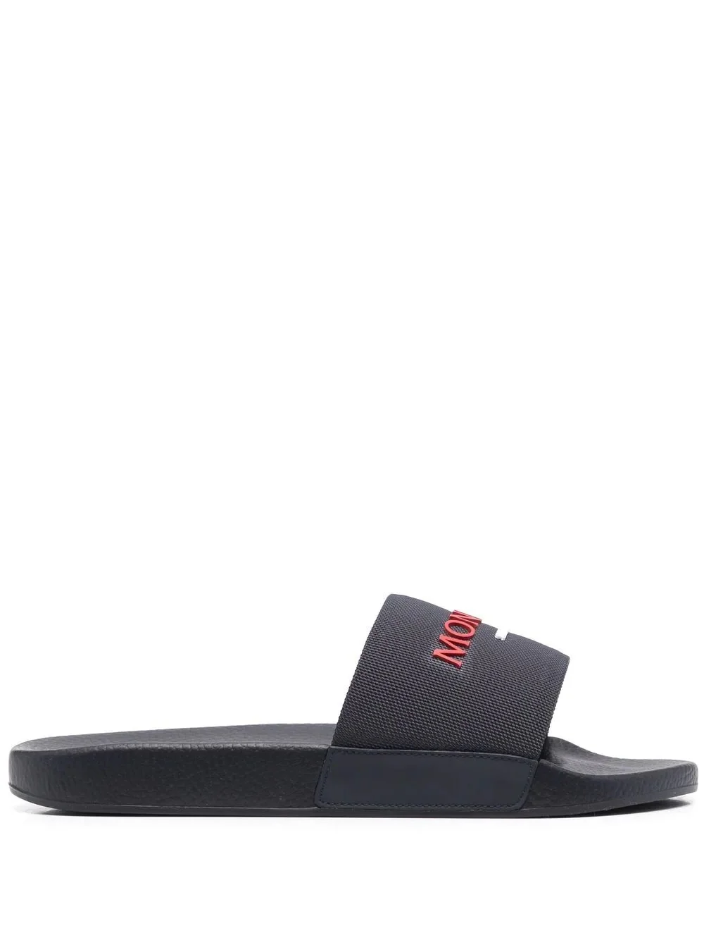 Bastile recycled rubber slides navy/red/white recycled rubber textured finish logo print to the front round toe moulded footbed flat rubber sole POSITIVELY CONSCIOUS: This Planet Conscious product is crafted from certified recycled or upcycled materials, which helps you make a better choice for the environment as they generate less energy, save water and reduce the need for new raw materials. For recycled synthetic clothing products we highly recommend using a microfibre-catching washing bag to ensure that no microplastics that can pollute water are released in the process. Made in Italy Composition Outer: Fabric 100% Lining: Rubber 100%, Fabric 100% Sole: Recycled Rubber 100% SIZE & FIT Measurement HEEL 1.18 in(3 cm) Washing instructions Dry Clean Only