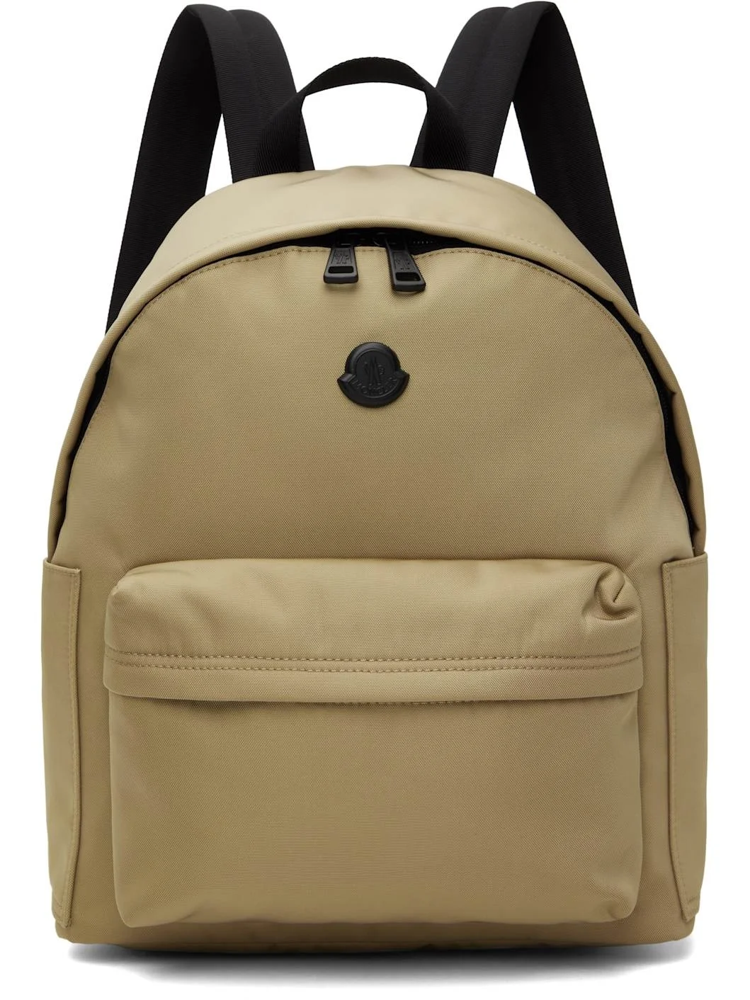 Water-repellent canvas backpack in beige. · Buffed leather trim throughout · Webbing carry handle · Adjustable padded shoulder straps · Silicone logo patch at face · Zip pocket at face · Patch pocket at sides · Two-way zip closure · Laptop compartment · Water-repellent nylon taffeta lining · H17" x W11.5" x D5" Supplier color: Intense beige Textile. Made in Romania 251111M166010