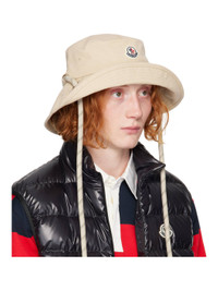 Cotton canvas bucket hat in beige. · Logo patch at face · Eyelets at brim · Self-tie chin strap · Broadcloth lining · Logo-engraved silver-tone hardware Supplier color: Beige 100% cotton. Made in Italy 242111M140008
