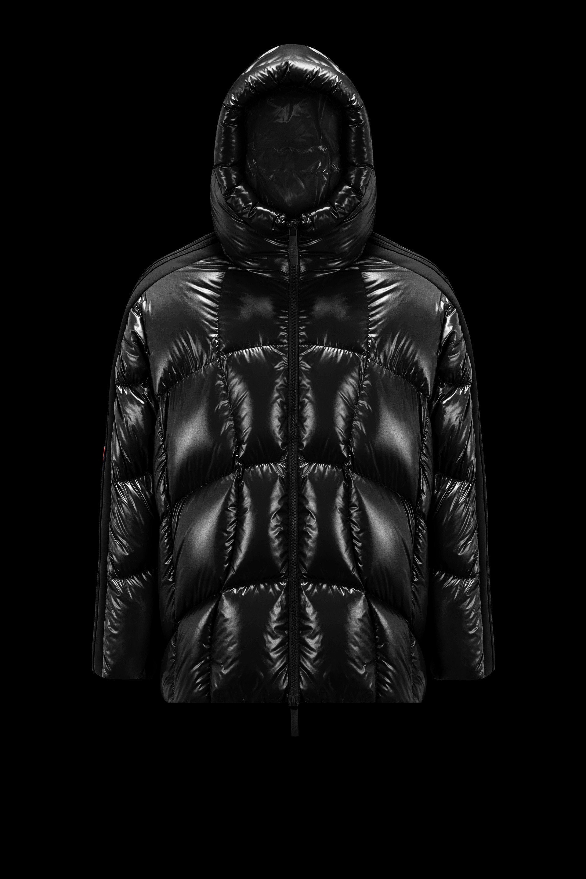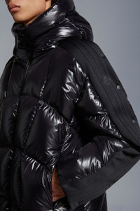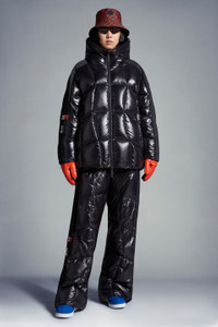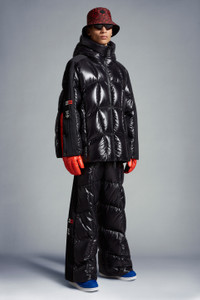 A statement warmer for men and women, the nylon laqué Beizer short down jacket is part of the Moncler x adidas Originals collection. A classic Moncler puffer is seen through the adidas Originals lens in the Beizer. Made from iconic nylon laqué, it shows off quilting that's a stylized take on marks created on snow-covered slopes while skiing. Signature three stripes accent the sleeves, which have a zipper and button closure. - Crafted from nylon laqué - Nylon laqué lining - Down-filled - Adjustable hood - Three adidas stripes along the shoulders and sleeves - Sleeves with zipper and snap button closure - Zipper closure - Zipped outer pockets - Mesh inner pockets - Silicone logo patches - Cuffs with internal elastic - Hem with elastic drawstring fastening SIZE AND FIT - The male model is wearing a size 3 and is 185 cm tall - The female model is wearing a size 0 and is 178 cm tall - The male model measures:chest 68 cm, waist 89 cm, hips 44 cm - The female model measures:bust 76 cm, waist 76 cm, hips 88 cm - Oversized fit COMPOSITION AND CARE EXTERIOR: 100% Polyamide / Nylon; LINING: 100% Polyamide / Nylon; PADDING: 90% Down, 10% Feather; 1 MATERIAL: 100% Polyester Hand wash; Do not bleach; Do not tumble dry; Ironing maximum temperature 110°C - without steam; Do not dry clean; Do not professionally wet clean; Flat dry in the shade; Wash separately; Do not twist or wring; Do not iron decorations; Iron with a cloth between; do not soak; It is advisable to wash and iron the garment on reverse. Product code I209S1A00012M2267999 Made in Romania