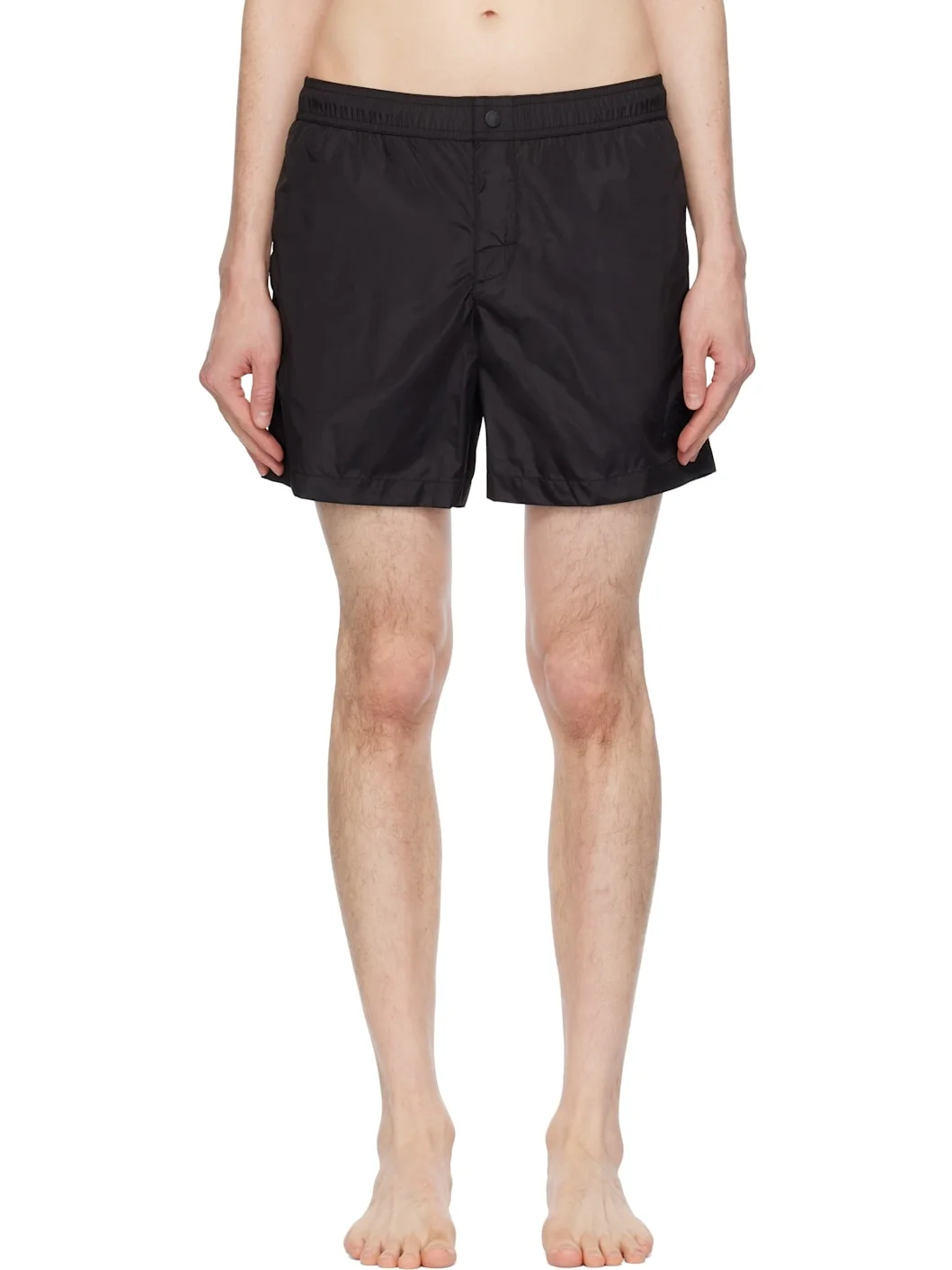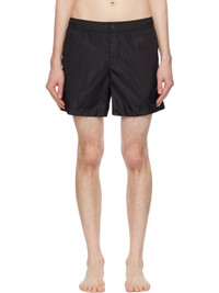 Nylon taffeta swim shorts. · Concealed drawstring at elasticized waistband · Three-pocket styling · Mock fly · Rubberized logo patch at cuff · Partial mesh lining Supplier color: Black 100% nylon. Made in Moldova 251111M208006