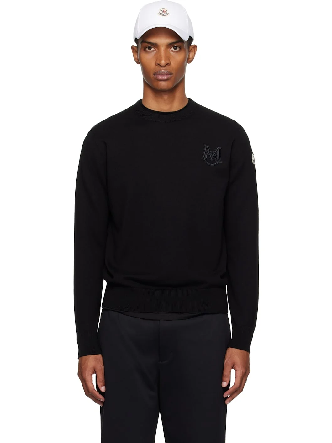 12-gauge knit cotton sweater. · Lightweight · Rib-knit crewneck, hem, and cuffs · Embroidered logo patch at chest · Felted logo patch at sleeve Supplier color: Black 100% cotton. Made in Bulgaria 252111M201004