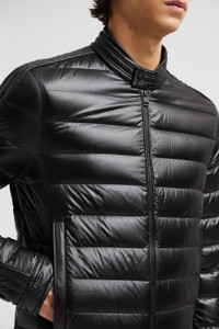 A contemporary take on menswear, the Jacobus fuses the protection of a classic puffer with the boldness of a biker jacket. A sleek design, the Jacobus is informed by the recognizable biker jacket silhouette. Crafted from coated nylon, the down jacket's streamlined shape is further emphasized by a shiny finish. The short puffer is completed by linear quilting along the arms, creating a playful contrast with the style's boudin-quilting. DETAILS - Crafted from coated nylon - Coated nylon lining - Down-filled - Collar with snap button closure - Zipper closure - Zipped pockets - Adjustable cuffs SIZE AND FIT - The model is wearing a size 3 and is 190 cm tall - The model measures: chest 92 cm, waist 77 cm, hips 95 cm - •Slim fit COMPOSITION EXTERIOR: 100% Polyamide / Nylon; LINING: 100% Polyamide / Nylon; PADDING: 90% Down, 10% Feather; DETAILS PADDING: 100% Polyester Product code K10911A00027597WN999 Made in Romania