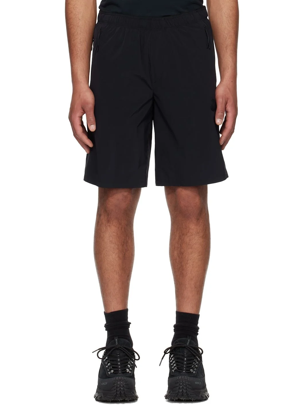 Stretch recycled nylon taffeta shorts. · Concealed drawstring at elasticized waistband · Three-pocket styling · Mock fly · Silicone logo patch at front Supplier color: Black 80% recycled polyamide, 20% elastane. Made in Moldova 251111M193082