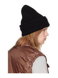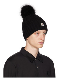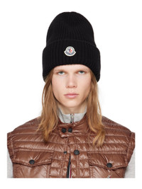 Rib knit modacrylic-blend beanie in black. Tricolor felted logo patch at rolled brim. Supplier color: Black 93% modacrylic, 7% polyester. Made in Italy 232111M138019