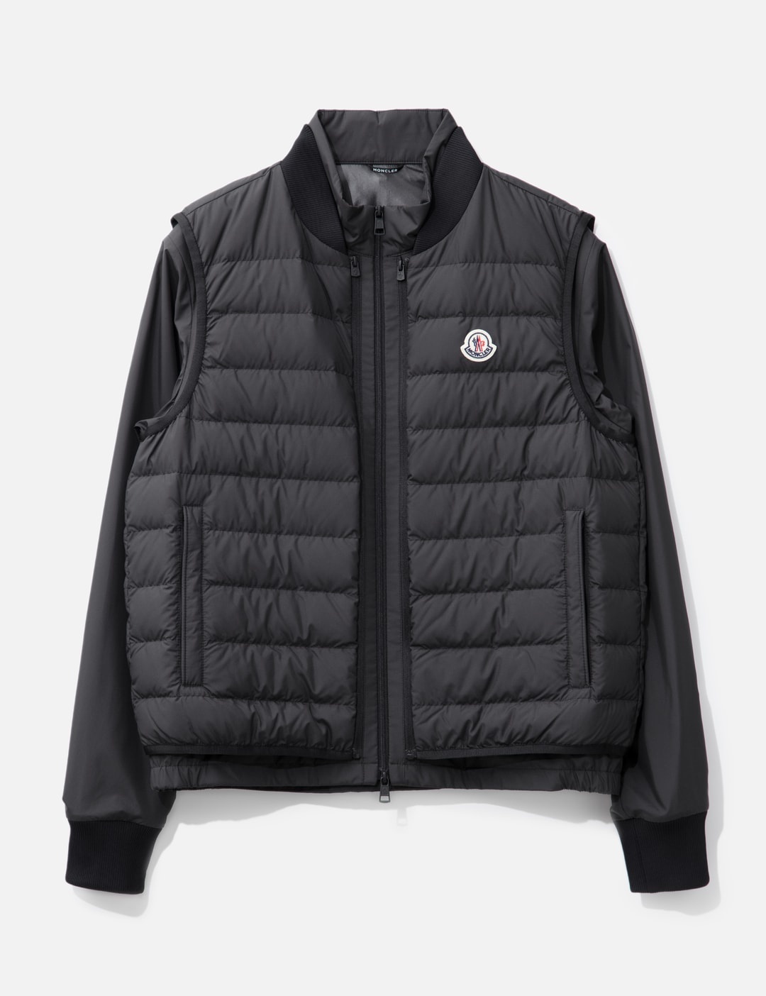 - Moncler - Verney 3-in-1 Short Down Jacket - Wear it as a vest, down jacket, or a wind jacket - Made from recycled polyester - Reversible design with a detachable puffer gilet - Detachable puffer gilet featuring classic boudin-quilting - Lightweight wind breaker at reverse - Felt logo at chest - Two front pockets - Color: Black - Material: Outer and Inner Layer: 100% Polyester; Vest Filling: 90% Down, 10% Feather - See more Puffer Jackets, Jackets and Clothing SIZING - Model wears size 2 - Model measures: Height 186cm, Chest 34”/86cm, Waist 28”/71cm, Hip 36”/91cm