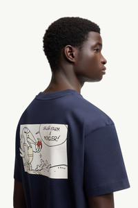 An everyday design for men, this Moncler x Gilga Farm by Donald Glover t-shirt is characterized by a cartoon-style motif on the back. A versatile layer, this Moncler Genius t-shirt shows the brand's mascot visiting Donald Glover's Gilga farm. The playful crew neck is crafted from soft cotton jersey. DETAILS - Crafted from heavy cotton jersey - Ribbed crew neck - Short sleeves - Printed logo motif - Logo patch SIZE AND FIT - The model is wearing a size M and is 189 cm tall - Regular fit COMPOSITION BASE FABRIC: 100% Cotton; Ribs: 100% Cotton Product code K24028C0000289AZ9786 Made in Turkey