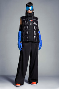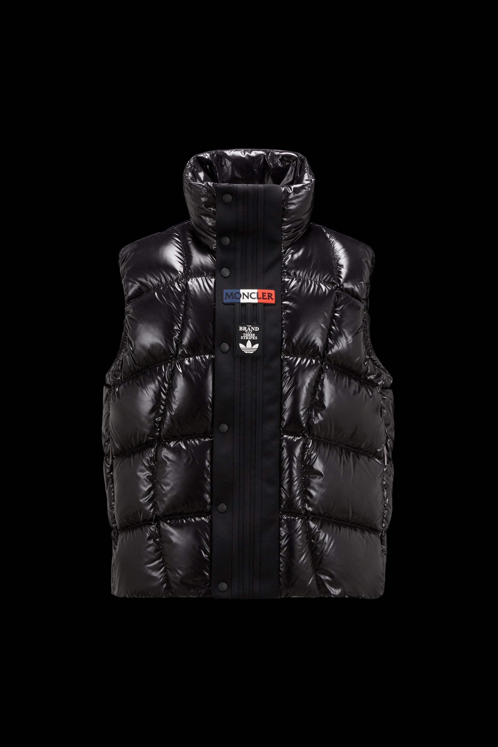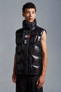 A statement warmer for men and women, the nylon laqué Bozon down vest is part of the Moncler x adidas Originals collection. A classic Moncler puffer vest is seen through the lens of adidas Originals in this warm layer. Made from iconic nylon laqué, it's finished with wavy quilting that reimagines marks created on snow-covered slopes while skiing. Signature three stripes and both brand logos sign off on the front flap. - Crafted from nylon laqué - Nylon laqué lining - Down-filled - Front flap with three adidas stripes - Zipper and snap button closure - Zipped outer pockets - Mesh inner pockets - Silicone logo patches - Hem with elastic drawstring fastening SIZE AND FIT - The male model is wearing a size 3 and is 185 cm tall - The female model is wearing a size 0 and is 178 cm tall - The male model measures:chest 68 cm, waist 89 cm, hips 44 cm - The female model measures:bust 76 cm, waist 76 cm, hips 88 cm - Oversized fit COMPOSITION AND CARE EXTERIOR: 100% Polyamide / Nylon; LINING: 100% Polyamide / Nylon; PADDING: 90% Down, 10% Feather; 1 MATERIAL: 100% Polyester Hand wash; Do not bleach; Do not tumble dry; Ironing maximum temperature 110°C - without steam; Do not dry clean; Do not professionally wet clean; Flat dry in the shade; Wash separately; Do not twist or wring; Do not iron decorations; Iron with a cloth between; do not soak; It is advisable to wash and iron the garment on reverse. Product code I209S1A00011M2267999 Made in Romania