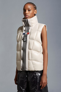 A statement warmer for men and women, the nylon laqué Bozon down vest is part of the Moncler x adidas Originals collection. A classic Moncler puffer vest is seen through the lens of adidas Originals in this warm layer. Made from iconic nylon laqué, it's finished with wavy quilting that reimagines marks created on snow-covered slopes while skiing. Signature three stripes and both brand logos sign off on the front flap. - Crafted from nylon laqué - Nylon laqué lining - Down-filled - Front flap with three adidas stripes - Zipper and snap button closure - Zipped outer pockets - Mesh inner pockets - Silicone logo patches - Hem with elastic drawstring fastening SIZE AND FIT - The male model is wearing a size 3 and is 185 cm tall - The female model is wearing a size 0 and is 175 cm tall - The male model measures:chest 62 cm, waist 86 cm, hips 43 cm - The female model measures:bust 80 cm, waist 80 cm, hips 87 cm - Oversized fit COMPOSITION AND CARE EXTERIOR: 100% Polyamide / Nylon; LINING: 100% Polyamide / Nylon; PADDING: 90% Down, 10% Feather; 1 MATERIAL: 100% Polyester Hand wash; Do not bleach; Do not tumble dry; Ironing maximum temperature 110°C - without steam; Do not dry clean; Do not professionally wet clean; Flat dry in the shade; Wash separately; Do not twist or wring; Do not iron decorations; Iron with a cloth between; do not soak; It is advisable to wash and iron the garment on reverse. Product code I209S1A00011M2267265 Made in Romania